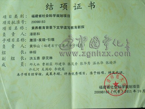 今年7月,林榕老師的論文《“激活•發現•引領”,共創師生雙贏》、洪玉惠老師《激活•發現•引領三位一體的實踐開拓教學新境界》榮獲國家教師科研基金“十二五”階段性成果一等獎,張茂香老師《文本解讀,貴在真實》獲二等獎。