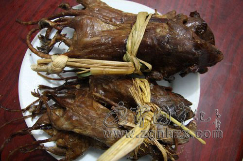 寧化人歷來(lái)愛(ài)吃田鼠干。入冬后,寧化縣江濱路一帶的餐館鼠干香味四溢,由田鼠干做成的菜肴讓食客大快朵頤。這道美其名曰“爆炒地猴”的菜肴,已成當(dāng)?shù)匕傩沾偷摹伴T(mén)面菜”。寧化境內(nèi)山多,稻田多處山嶺坑垅之間,每年稻子、大豆成熟時(shí),田鼠肆虐田間。為了滅鼠保糧,人們便用竹筒做成捕鼠器捕捉田鼠,并制成田鼠干,成為一道特色菜肴。當(dāng)?shù)匕傩照J(rèn)為,老鼠干蛋白質(zhì)含量高,有助于補(bǔ)腎健脾,對(duì)治療小孩尿床有較好療效。古時(shí),寧化田鼠干被列為“汀州八干”之一。