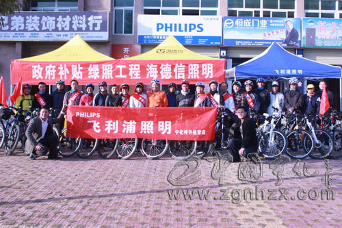 ??? 該日早晨8時20分,溫度零下2攝氏度,寒風凜冽,車友們身披“節能減排,低碳環保”綬帶,頂著嚴寒,從永利家園集合出發,沿著寧化永利家園飛利浦照明特許經營店---石壁----淮土----方田----曹坊----安樂----寧化城關的騎行路線進行環該縣西南片鄉鎮騎行,全程90來公里。