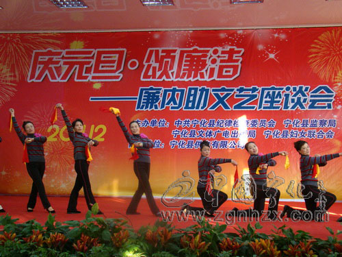 ???? 歡聲笑語辭舊歲,鶯歌燕舞迎新春;勤政愛民弘正氣,揚清激濁倡廉風。12月27日下午,由寧化縣紀委、縣監察局、縣文體廣電出版局、縣婦聯聯合主辦,寧化縣供電有限公司協辦的“慶元旦?頌廉潔”廉內助文藝座談會在縣委黨校會議室舉行,一曲曲嘹亮的歌聲,一個個優美的舞姿,真實再現了寧化縣跨越發展中廉潔、風清、氣正、勁足的喜人發展氛圍。