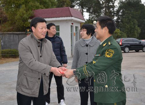 ??? 縣委副書記羅金水,縣委常委、統(tǒng)戰(zhàn)部部長黃芳來到寧化武警中隊,親切地慰問了武警中隊的戰(zhàn)士們。在武警中隊門口,幾名武警戰(zhàn)士整齊列隊歡迎羅金水、黃芳一行的到來,羅金水親切地與每位戰(zhàn)士握手,并祝他們新年快樂。在武警中隊,羅金水一行參觀了活動室、榮譽陳列室、圖書館及戰(zhàn)士宿舍等,了解戰(zhàn)士們的平時的訓(xùn)練情況及日常生活,并囑咐一定要讓武警戰(zhàn)士們在除夕夜吃上一頓可口的年夜飯,慰藉他們的思鄉(xiāng)情。他還代表縣委縣政府向武警戰(zhàn)士們保衛(wèi)寧化一方平安、促進寧化經(jīng)濟順利發(fā)展所做的貢獻表示感謝,并送上慰問金。