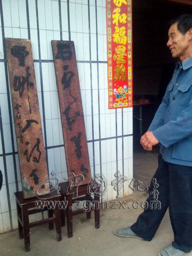 ??? “這副楹聯也算經歷了幾次災難呢?當時它們被親族當作蓋雞籠的蓋板,后來我發現了才把它們洗干凈藏起來。誰知道,98年一場大火把原本偌大的宅院燒得一干二凈,什么也沒有帶出來,只搶救出來了這副聯子。”曾叔說到這有點暗自傷神。