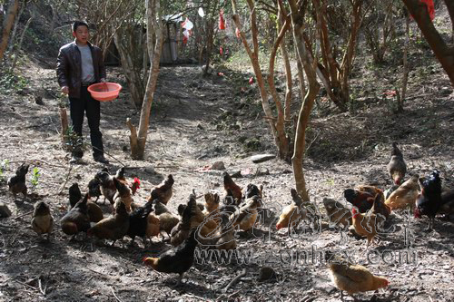 吳老板的土雞放養在油茶林里,記者看到,一盆雞蛋,近一半是綠殼蛋。綠殼蛋深淺不一,有淺綠、淡綠,也有深綠色的。樹墩上有一個剛產下的蛋,蛋殼細膩,呈深綠色。綠殼蛋不稀奇,現在有一種母雞專下這樣顏色的蛋。但吳應良養的雞都是極普通的本地雞種,以前從未聽說有誰家的本地種母雞下過綠殼蛋。“可能是雞吃多了綠色植物,對雞蛋顏色產生影響。”吳老板推測。