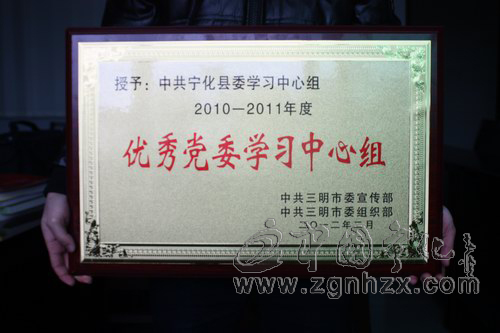 中共寧化縣委學習中心組被評為優秀黨委(黨組)學習中心組。縣委常委、紀委書記劉小彥的《推行“四S”管理模式 提升紀檢監察機關自身建設科學化水平》與縣委常委、宣傳部部長鄭曉星的《談談寧化縣創建學習型黨組織的體會》等兩篇論文被評為優秀調研文章。