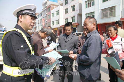 ??? 清明將至,寧化縣公安交警大隊針對往年農民清明節掃墓違法搭乘超載車輛及摩托車超員超速等不良現象,提早采取措施,強化農村交通安全宣傳教育,組織民警深入14個鄉鎮,開展 “進墟場入田頭送平安”交通安全宣傳活動。圖為3月28日,大隊民警來到石壁鎮石碧村墟場和田間,向農民發放宣傳資料,教育廣大群眾不坐超員車,不坐不具備營運條件的破舊客車,不坐低速載貨汽車,增強了群眾的自我教育、自我保護意識。(羅旺水 張碧梅 文/圖)