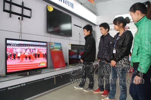 寧化東方家電城的員工聚在一起收看了中央電視臺《影視同期聲》的報道