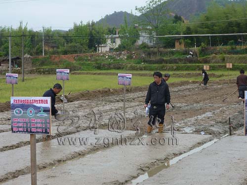連日來,寧化縣河龍鄉(xiāng)農(nóng)技站站長曾仁杰指導(dǎo)農(nóng)民在河龍貢米品種篩選基地播種。