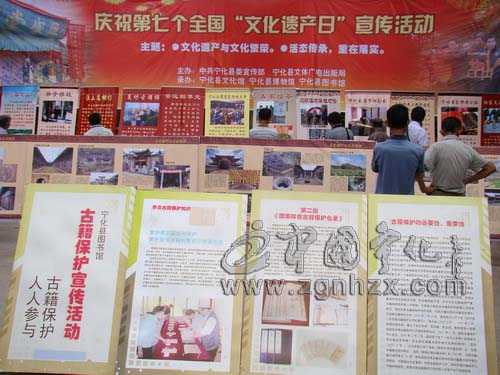 ??? 雖然上午下起了大雨,影響了展臺和展板的布置,但上午10點半左右雨停后,圖文并茂的展板前還是人頭攢動,所展出木活字印刷術、“玉扣紙”、高地“文武燈”、河龍祈劇等非遺項目15個展板,下曹古建筑群、社背土樓等40余個文物保護單位(點)7個展板,古籍保護4個展版引來了絡繹不絕的市民。“這種宣傳形式很好,讓我們充分認識了寧化的文化遺產,同時也增強了我們寧化人的自豪感。”城區居民老張深有感觸地說。