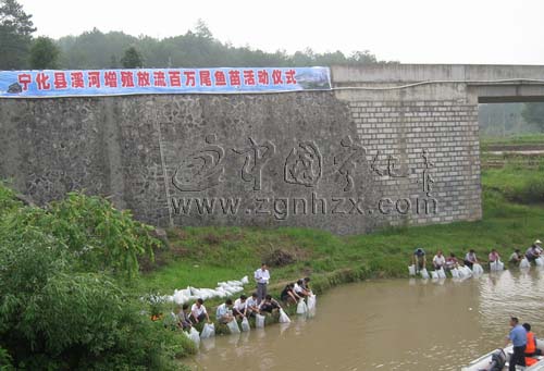 ??? 6月13日,由寧化縣農(nóng)業(yè)局舉辦的寧化縣溪河增殖放流百萬(wàn)尾魚(yú)苗活動(dòng)儀式在沙溪陂下河段舉行。縣政府副縣長(zhǎng)陳朝利,縣政府、縣人大、縣釣魚(yú)協(xié)會(huì)等單位100多人參加了活動(dòng)。