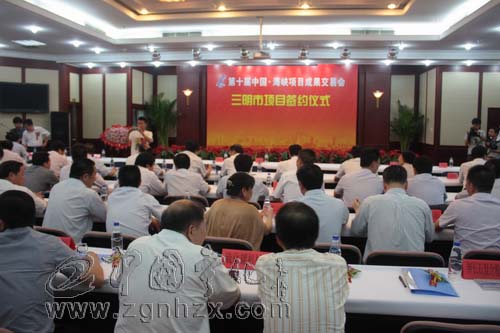 ??? 昨日,在第十屆中國?海峽項目成果交易會(簡稱“海交會”)即將開幕之際,三明市項目簽約儀式在福州三明大廈舉行。寧化有三個項目簽約,簽約金額達2.03億元。縣長楊勝出席簽約儀式。