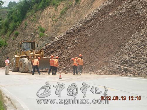 ??? 上午11時,演練正式開始:寧化公路分局曹坊公路站職工接到“公路邊坡突發水毀溜方險情”電話通知后,當即組織人員、搶毀施工機械趕往現場,在該分局有關人員的指揮下,搶險隊員有條不紊的組織搶險,有的在事發路段的上下路口設置警示標志和錐標,對過往車輛進行引導和疏通,實行臨時交通管制;有的觀察滑坡體擴展態勢,做好安全警戒,防止次生災害危及作業人員安全;有的駕駛鏟車、挖掘機進入現場清理溜方;有的人工配合清理路面淤泥,防止因路面濕滑引發交通事故。經過近50分鐘的奮戰,占據路面的溜方全部清理干凈,在保暢人員的引導下,交通恢復正常。