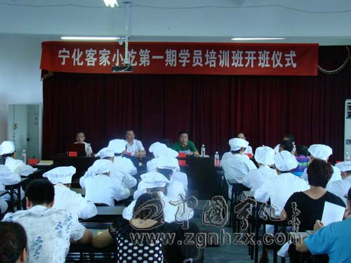 ??? 6月26日上午,寧化客家小吃第一期學員培訓班開班儀式在三明工貿(mào)學校舉行。縣委常委、紀委書記、縣客家小吃工作領導小組組長劉小彥,縣人大常委會調(diào)研員、縣客家小吃工作領導小組副組長居蘇華,縣政府副縣長、縣客家小吃工作領導小組副組長陳朝利出席開班儀式。
