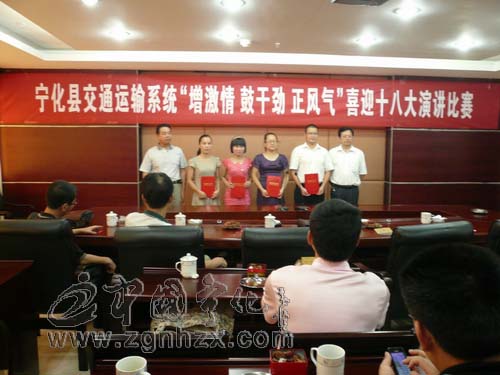 為慶祝中國共產黨成立91周年,激發(fā)黨員干部立足崗位、無私奉獻、創(chuàng)先爭優(yōu)的工作熱情,6月27日下午,寧化縣交通運輸系統(tǒng)舉行“增激情、鼓干勁、正風氣”喜迎十八大演講比賽,系統(tǒng)各支部選手參加了比賽。