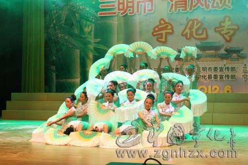 ??? 根據主辦方的要求,在各縣(市)巡演應以挖掘當地文化內涵,創作廉政歌曲,編排配樂詩朗誦、戲曲、群口快板等節目為主。為此,寧化縣進行了認真的組織和充分的準備,演出的11個節目中有8個是自編自演的節目,體現的濃郁的客家特色,深受觀眾的喜愛。