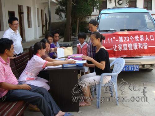??? 連日來(lái),寧化縣曹坊鄉(xiāng)計(jì)生辦的宣傳車(chē)披紅掛彩,載著計(jì)生辦人員走訪各村,宣傳車(chē)上喇叭正高聲播放著計(jì)生政策法規(guī)、生殖健康、優(yōu)生優(yōu)育、避孕節(jié)育等知識(shí)。在各村人群集中的地方,設(shè)立咨詢(xún)點(diǎn),現(xiàn)場(chǎng)為育齡群眾進(jìn)行義診和生殖健康疑難問(wèn)題解答、咨詢(xún)及辦理有關(guān)證件。向前來(lái)接受服務(wù)的人群發(fā)放“五期保健知識(shí)”、“辦理再生育子女須知”、“流動(dòng)人口計(jì)劃生育指南”、“避孕節(jié)育知情選擇”、“生育健康聰明的寶寶”等宣傳資料300多份及安全套50盒,為30名來(lái)咨詢(xún)的群眾進(jìn)行相關(guān)的解答并冒著盛夏的炎熱為80人測(cè)量了血壓。