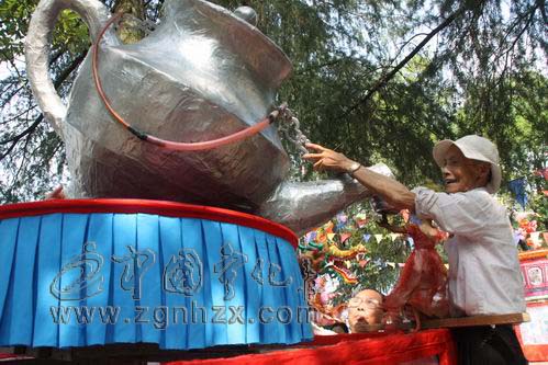 ??? 黃瑞海一向熱心宣傳計生政策,多年來自費制作了近200個花燈等宣傳道具。這三盞花燈,花了將近一年的時間制作,除了人工,他還在道具、燈光等方面貼了不少錢。