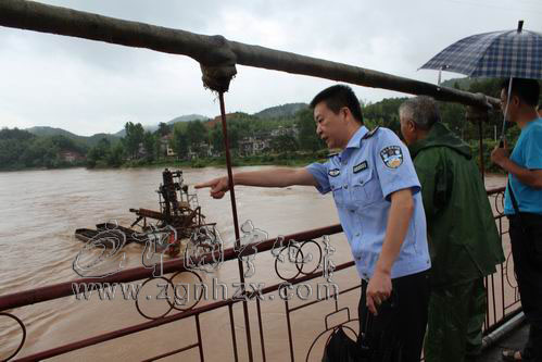 ??? 接到報警后,趕到現(xiàn)場的消防官兵和公安干警制定出救援方案。從撈沙船停泊點上游的鐵索橋拋出兩條“安全繩”,將其固定在撈沙船上,成功駕起一道救人“橋梁”。岸邊的消防官兵通過固定好的繩索,將消防腰帶、救生衣和安全鉤傳遞到撈沙船上,并通過喊話器現(xiàn)場傳授了使用的方法。一名撈沙工迅速得到解救。