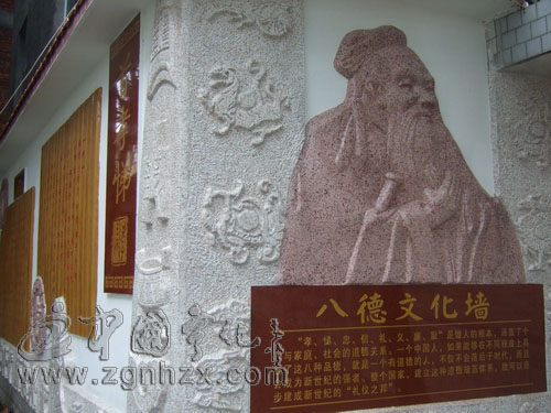 ??? 近日,筆者走進寧化師范附屬小學校園,有一堵圖文并茂、引人矚目的浮雕文化壁,在50多米長、3米多高的文化墻上,雕刻著“孝、悌、忠、信、禮、義、廉、恥”8個大字。每個大字旁邊,還有相應的注釋和“負荊請罪”、“子貢尊師”、“語出驚人”、“不貪為寶”等傳統美德故事浮雕。這是該校精心打造的校園道德教育新平臺——“八德”文化墻,其用意是讓青少年更直觀地了解和傳承“孝、悌、忠、信、禮、義、廉、恥”的八德精神,弘揚中華民族的傳統美德。