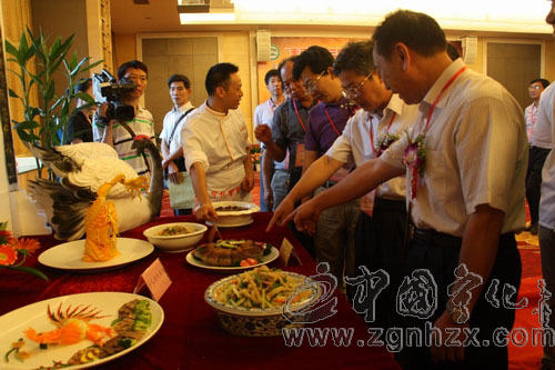 出席烹飪大賽的有關(guān)市領(lǐng)導(dǎo)對寧化客家美食感興趣