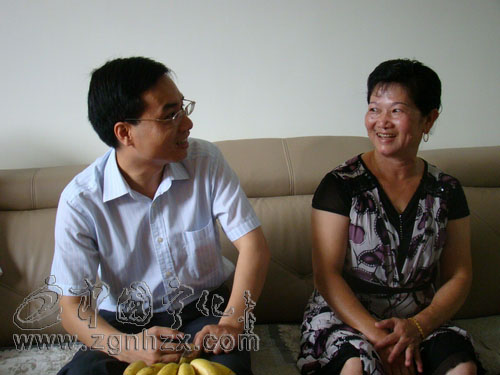 熊萬(wàn)鵬(左)與印尼歸僑劉春強(qiáng)的愛(ài)人親切交談