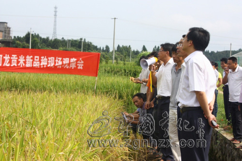 ??? 9月6日,寧化縣河龍鄉河龍貢米備選品種組合展示區里人聲鼎沸,一場別開生面的河龍貢米新品種現場觀摩會正在舉行。來自全鄉的農技員、種植大戶等100余人,對引進種植的20個水稻品種進行現場觀摩對比,為明年要種植水的水稻種品種作準備。