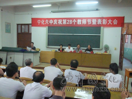 ??? 9月7日下午,寧化六中慶祝第28個教師節暨表彰大會在多媒體會議室舉行。會上表彰了58名上學年度校優秀教師、優秀班主任、先進教育工作者。