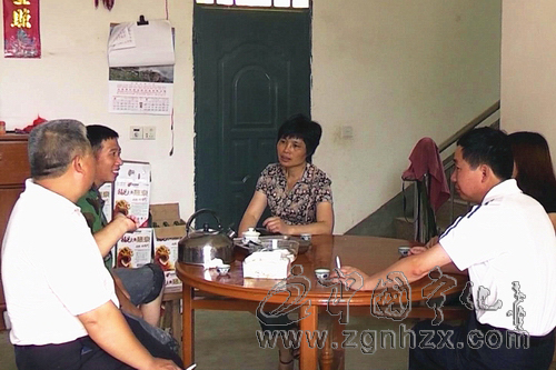 鄭翠春(中)深入農戶家中開展回訪工作(江偉健/攝)