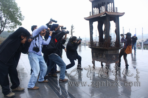 ??? 在寧化石壁客家祖地,采風團一行在導游引導下,一邊沿著主軸前行,一邊聽取客家人遷徙和客家文化特點的介紹。在半月池、甬道、尋根柱、祭祀廣場、懷祖殿等建筑前,仿古的宮殿設計,飛檐斗拱,雕梁畫棟,氣勢雄偉,蔚為壯觀。網友們被其獨特的建筑風格所吸引,不時駐足拍攝,記錄下這具有獨特韻味和別具特色的客家祖地?!罢驹诳諘绲募漓霃V場,浮雕群、客家先賢銅塑等形象地再現了客家歷史的畫卷,讓我頗為感慨?!币晃魂愋站W友告訴筆者。