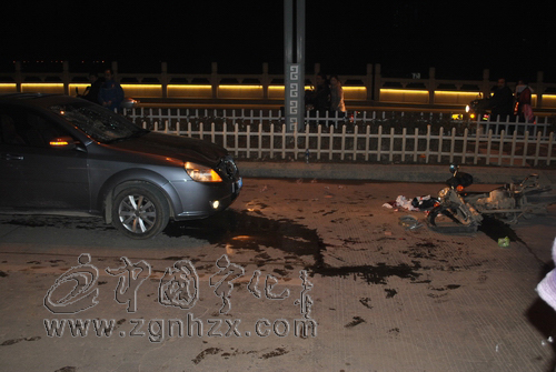 ??? 據了解,武平人賴某某駕駛閩C5XXXX號小車行經寧化城區中環大橋時,碰撞到逆行無牌二輪摩托車駕駛人伍某某,造成乘座人蘇某某當場死亡,伍某某受傷。
