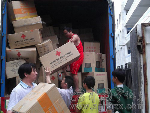 5月23日,一輛七米長大卡車緩緩地駛入寧化縣淮土中心學校,車上滿載印著紅十字會標志的捐贈物品,有體育用品、書包、鞋類等物件,總價值16萬余元。