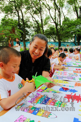 ??? 在活動(dòng)現(xiàn)場(chǎng),百余名幼兒在老師的輔導(dǎo)下,用蠟筆、彩筆、顏料、橡皮泥等繪畫工具創(chuàng)作出“快樂六一”、“未來天空”、“美麗家鄉(xiāng)”等一幅幅線描畫、蠟彩畫、剪紙等,表達(dá)他們對(duì)于“中國夢(mèng)·我心中的夢(mèng)”的理解?!拔议L大要當(dāng)一名宇航員,象楊利偉叔叔一樣,乘坐飛船駛向太空”,大一班的曹琳麗指著自己畫的宇宙飛船煞有介事地說。