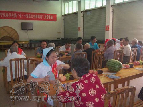 6月29日上午,寧化縣疾控中心支部黨員志愿者與縣中醫院的志愿者們來到敬老院,共同為20多位老人送上了解暑水果;為他們細心的測量血壓、與老人們拉家常,耐心的向他們講解有關糖尿病、高血壓等老年人易患慢性病的醫學常識和日常飲食要注意的問題并為一些有需要的老人現場開出處方并免費贈送藥品。活動結束時,老人們與志愿者們一一握手致謝,紛紛表示真心的感謝黨和政府,感謝黨和政府帶給我們的溫暖,帶給我們的關心、呵護。(吳顯財 謝濤)