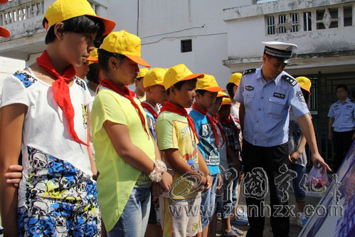 ??? 小宣傳員們先觀看了交通肇事圖片展,縣交管大隊民警對圖片進行了詳細說明,血淋淋的事實讓小宣傳員們得到最直觀的教育??h交管大隊副教導員陳清波對交警手勢進行現場演示,并且對小學生們進行交警手勢教學指導。最后,小黃帽宣傳員分成若干個小組在民警的帶領下走進集鎮開展交通安全宣傳活動,向人們發放了交通安全宣傳手冊1000份。