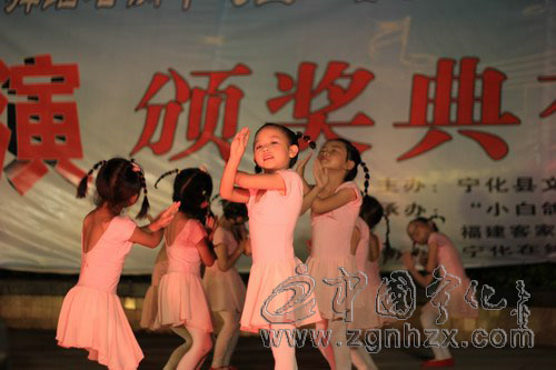 7月4日晚,寧化縣“小白鴿”舞蹈藝術中心匯報演出暨客祖紅韻清明采茶攝影比賽頒獎晚會在世客中心舉行。來自城區中、小學及幼兒園的200余名學生為現場千余名觀眾奉獻了一場精彩的表演。