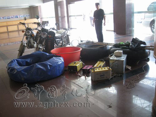 7月12日,在釣魚愛好者的協助下,中國漁政寧化縣大隊大隊長張新陽帶領漁政執法人員,深夜出擊,在湖村鎮店上將軍嶺河段,抓獲一正在非法電魚的團伙,共計抓獲非法電魚團伙成員3人,查獲電魚機2臺、橡皮輪胎筏一只、暫扣摩托車2部、增氧機1臺、其他捕撈工具若干。