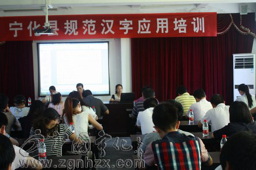 7月12日,寧化縣語言文字工作委員會與縣人民政府辦公室、縣委宣傳部、縣公務員局、縣文廣局、縣工商行政管理局等聯合舉辦規范漢字應用培訓班,對從事編輯、印刷、字幕制作、印章、牌匾、廣告制作的從業人員和各鄉(鎮)政府、縣直各單位及城區學校語言文字工作干部進行漢字應用水平培訓。