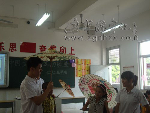 ??? 7月13日,一堂以“中國文化夢”為主題的專題課,在寧化東風小學開講。來自福建工程學院環境與設備工程系暑期社會實踐團的成員為該校師生上了生動的一課。與此同時,他們還為東風小學的學生同學們展示了中國傳統工藝油紙傘、剪紙、臉譜,并指導同學們親自動手制作,讓同學們在快樂學習中感受傳統文化的魅力。