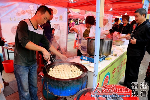 ?? 人民網(wǎng)三明11月7日電(鄒家驊 文/圖)在第九屆海峽兩岸林業(yè)博覽會(huì)的廣場(chǎng)展區(qū)里,專(zhuān)門(mén)設(shè)置了寧化客家小吃展示活動(dòng)。兜湯、勺子粉、松丸子等寧化特色小吃一應(yīng)俱全。??? 寧化是客家祖地,客家人北徙南遷,這里逐漸形成獨(dú)特的飲食習(xí)俗和風(fēng)味菜肴,小吃更是其中的一朵奇葩。據(jù)不完全統(tǒng)計(jì),寧化客家小吃有100多種,但目前,由于開(kāi)在寧化之外的客家小吃店數(shù)量有限,知名度還不高。此次展會(huì)專(zhuān)門(mén)設(shè)置小吃展示活動(dòng),就是要利用林博會(huì)客商云集的機(jī)遇,提高寧化客家小吃的知名度,讓寧化客家小吃走出去。