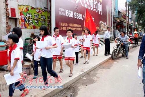 ??? 6月14日,紅旗小學“啄木鳥”志愿者走出校門,對公共服務行業、店鋪招牌、廣告牌等用字情況進行“拉網式”調查。志愿者們在隊旗的引領下,從東街路交警大隊門口出發,沿著新橋路,一直來到步行街南入口處。一路上,“啄木鳥”志愿者細心查找,共發現店鋪招牌、廣告牌等使用繁體字、異體字等不規范用字50多處,他們通過填寫調查表、拍照等形式向有關部門反饋調查信息,以便得到及時整改。