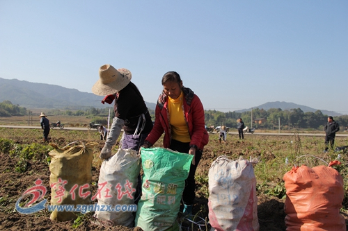 ??? 11月19日,寧化泉上鎮羅李村的地瓜地里一片歡笑,村民張傳金和十幾個幫工正忙碌地挖地瓜。一輛大卡車在田邊的水泥路上等候裝車。