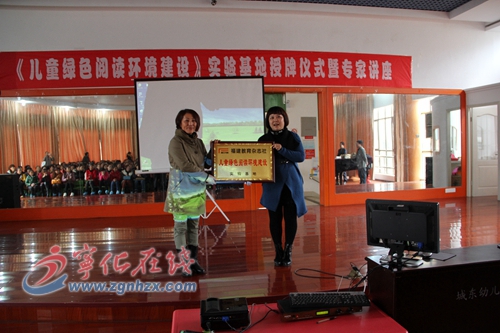 福建教育雜志社幼教中心負(fù)責(zé)人劉曉玲向城東幼兒園授牌,授予“《兒童綠色閱讀環(huán)境建設(shè)》實(shí)驗(yàn)基地”牌匾,并現(xiàn)場(chǎng)開(kāi)展故事媽媽培訓(xùn)活動(dòng)。