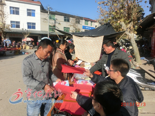 12月3日,寧化縣曹坊鎮利用傳統墟日,以"大力弘揚法治精神,共筑偉大中國夢"為主題,在人流集中地的小學校門外附近開展法制宣傳。計生、司法、婦聯、綜治、信訪、工商、勞保、林業、公安、國土等10余個部門參加了此次活動宣傳,各部門宣傳人員向前來咨詢的群眾傾心交談,向農民發放宣傳資料5000余份,發放宣傳購物袋1000余個。(鄧婉青)