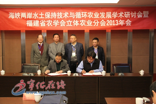 會議舉行了3個項目簽約儀式。臺中市社區營造協會與省農科院農業生態研究所、省農科院農經與信息研究所簽訂技術引進與合作研究協議;臺灣南良集團與省農科院農業生態研究所簽訂科企合作協議;臺灣南良集團與福清星源農牧簽訂合作協議。與會專家代表考察了寧化縣水土保持科普示范園。