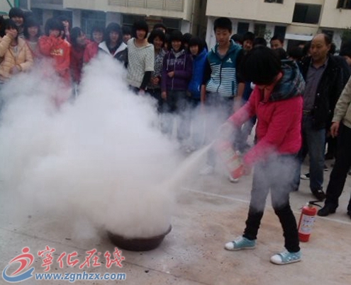 ??? 隨著防火警報的響起,各班同學在老師和各樓道疏導員的引導下,用濕毛巾捂住口鼻、彎下腰,不斷從安全疏散通道奔出,1分10秒后全體參演同學安全撤離火災現場,整個現場井然有序。消防逃生演練結束后,又在操場上對學生進行了滅火器使用的培訓,學生們親自體驗了現場滅火的過程,掌握了滅火的步驟和方法。