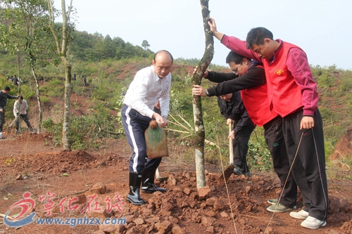 ??? 植樹現(xiàn)場簡樸熱烈,沒有橫幅、彩旗,到處是揮汗如雨、熱火朝天的勞動景象。縣領(lǐng)導揮鍬鏟土,一邊揮鍬培土,一邊與林業(yè)部門了解植樹造林情況。現(xiàn)場因為下雨天很泥濘,但大伙依然熱情高漲,配合默契,繁忙而有序。青年志愿者及當?shù)厝罕姺雒缗嗤粒魮鷿菜豢每么笕~女貞、杜英等苗木出現(xiàn)在山坡上,為水保示范園增添生機。