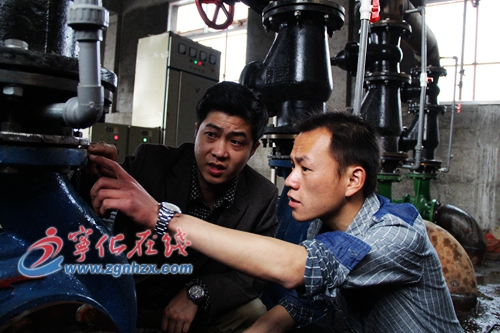 3月27日,鴨姆潭大中型泵站改造 (寧化)西溪泵站改造工程成功試水。西溪泵站始建于1960年,因運行時間久,設備老化,2013年11月啟動改造工程項目,今年3月中旬完工。改造項目總投資120多萬元,總裝機容量90千瓦,設計灌溉面積2000多畝。圖為工程監理在檢查抽水泵運行情況。(張麗勍 楊青松 攝影報道)