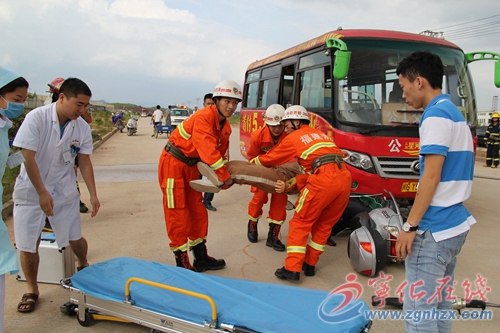 6月26日,寧化縣安監(jiān)局聯(lián)合縣交通局、衛(wèi)生局、交管大隊、消防大隊、縣農(nóng)業(yè)局農(nóng)機(jī)辦等部門,在城南工業(yè)園開展交通事故應(yīng)急救援演練。