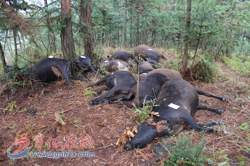 ??? 6月18日,寧化縣河龍鄉前進村景云小組村民楊興遠等人到中沙派出所報警,稱本村村民的十頭耕牛死在村莊附近的山林中,懷疑是被人毒死。接到報警后,中沙派出所立即組織民警到現場,十頭耕牛橫七豎八倒在樹下。