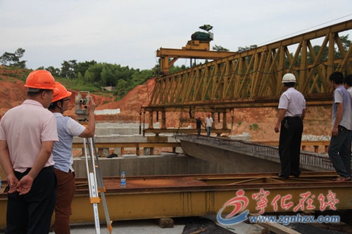昨日下午,寧化縣邊貿橋開始吊裝箱梁,每片長約25米、重80噸的預制箱梁在工程技術人員的指揮下被準確放置到位。