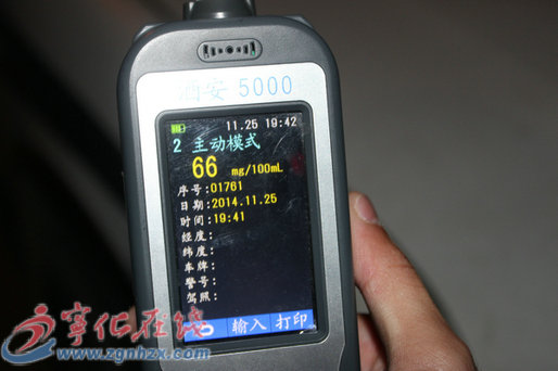 執法人員對駕駛員進行酒精測試